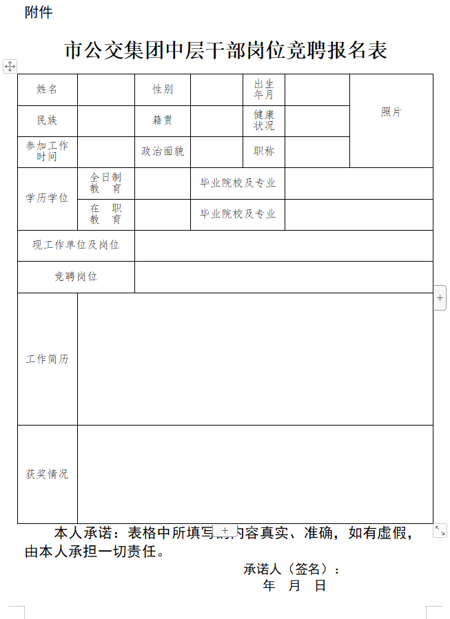 附件:市公交集團中層干部副職崗位競聘報名表