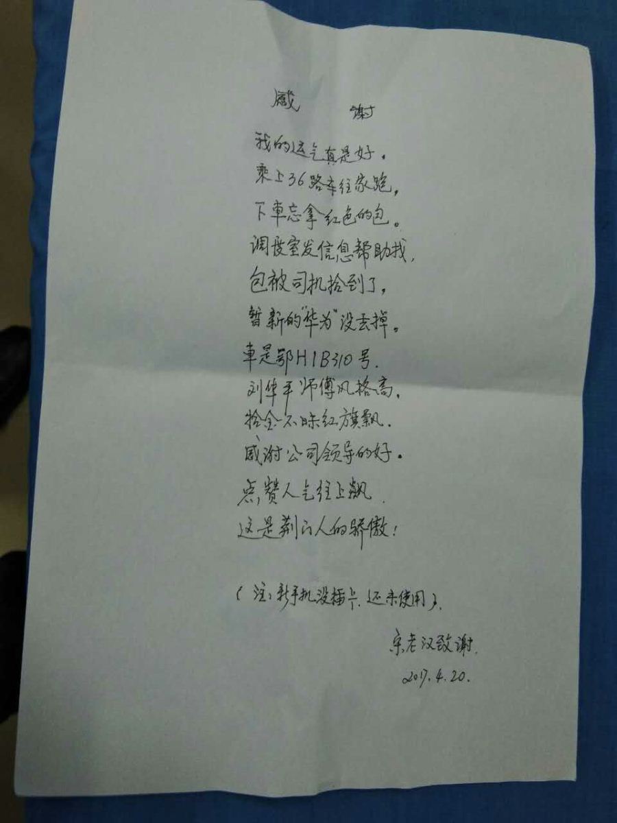 36路司機(jī)拾金不昧,失主作詩(shī)贊揚(yáng)